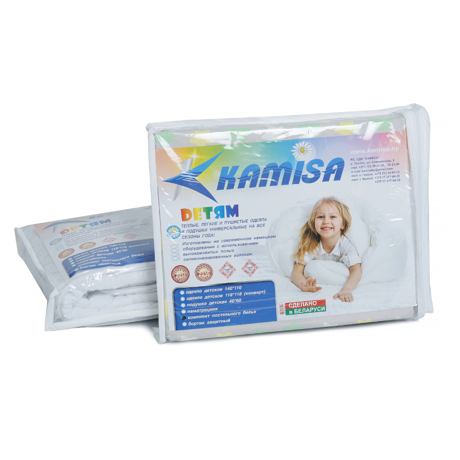 Комплект Kamisa — это здоровый сон без забот! Натуральные дышащие материалы и высочайшее качество исполнения защитят сон вашего малыша.